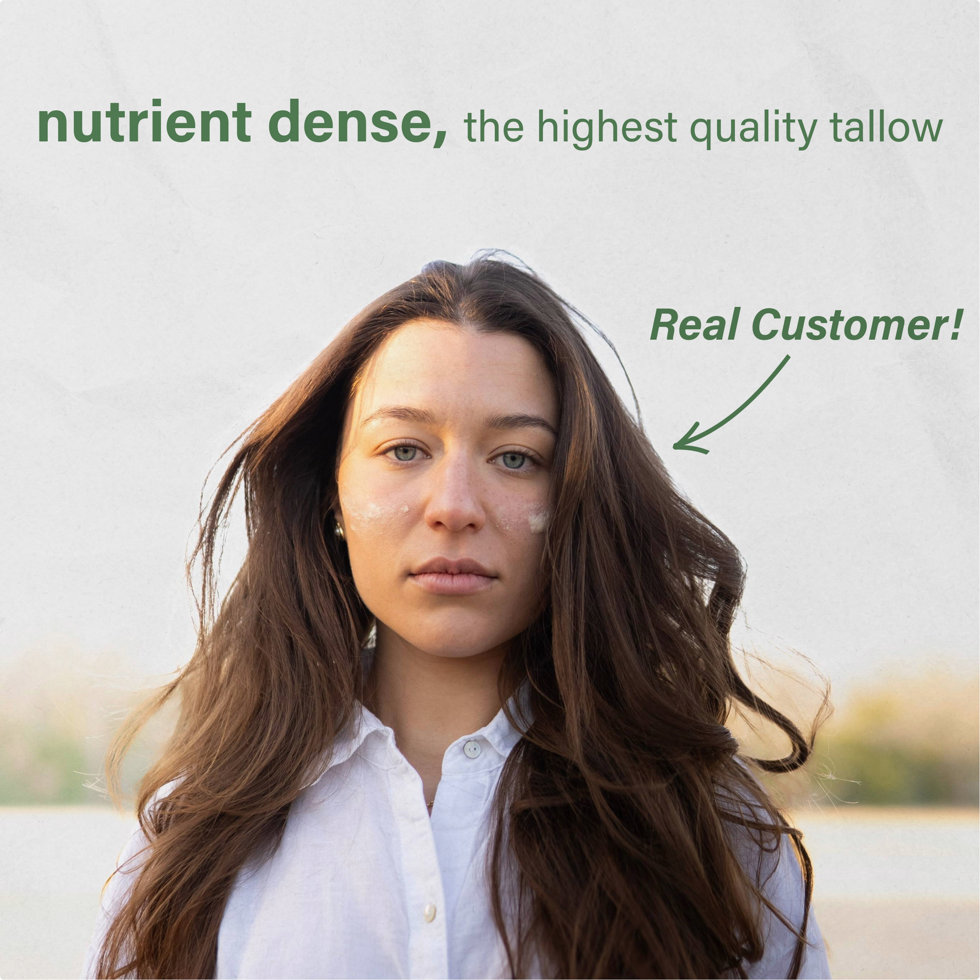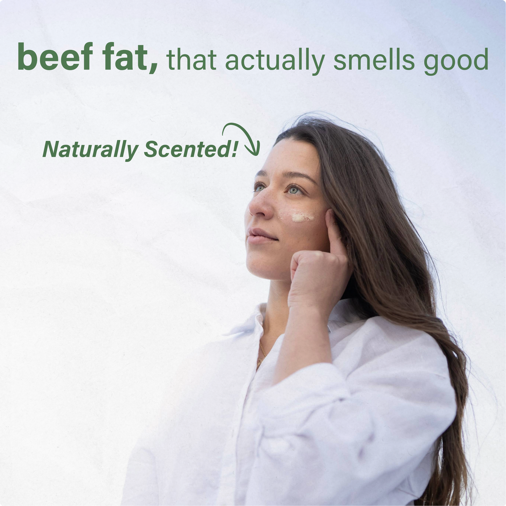 Tallow is known for its ability to support the skin's natural barrier and provide lasting hydration. It contains essential fats that can help the skin feel softer and appear less dry.